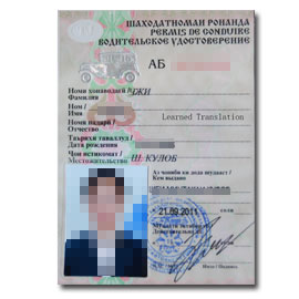 塔吉克斯坦驾照翻译